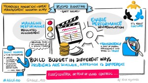 Handelsbanken und einige andere Unternehmen, darunter auch Borealis, über die wir gesprochen haben, haben Ende der 90er Jahre das sogenannte Beyond Budgeting inspiriert. Diese Grundsätze wurden also bereits drei Jahre vor dem Agilen Manifest formuliert. Zu dieser Zeit gab es keinerlei Kontakt zwischen diesen beiden Gemeinschaften. Das hat sich zum Glück geändert, wofür diese Sitzung ein Beispiel ist. Aber du kannst sehen, dass es viele Ähnlichkeiten zwischen den beiden gibt. Ich denke, der große Unterschied ist, dass das Agile Manifest nicht entwickelt wurde, um eine große Organisation zu führen. Es wurde ursprünglich entwickelt, um die Softwareentwicklung zu verbessern. Beyond Budgeting wurde geboren, um Organisationen zu helfen oder die Art und Weise zu verbessern, wie Organisationen geführt werden. Es gibt also Dinge, die Beyond Budgeting anspricht, die Agile nicht berücksichtigt, aber sie ergänzen sich sehr gut.