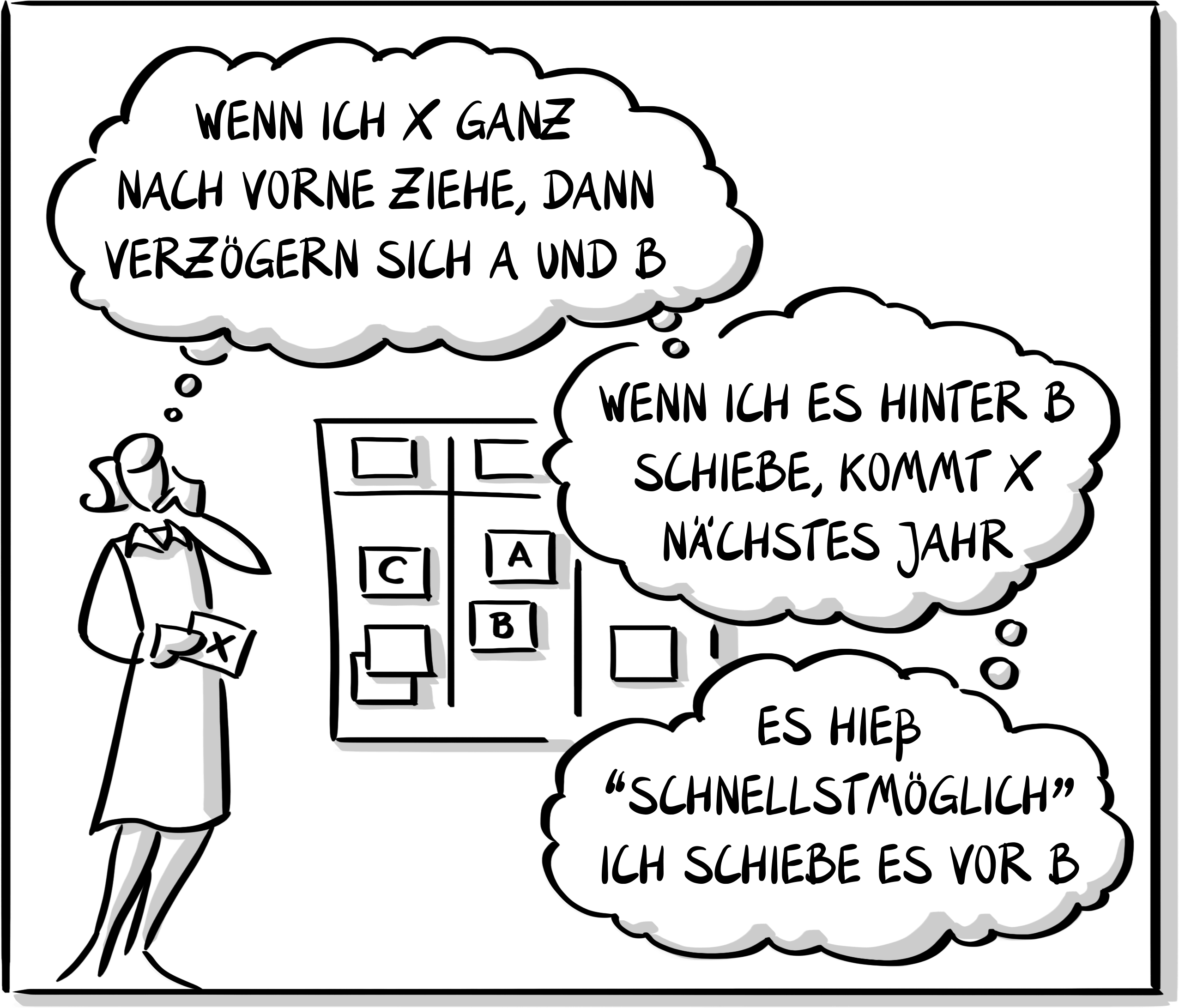 Die entstehenden Verwirrungen führen dann im Nachhinein dazu, dass man den Kunden beschwichtigt, bereits begonnene Arbeiten unterbricht und teilweise fertig gestellte Themen nach hinten stellt. Dies ist weder wünschenswert, noch nachhaltig.