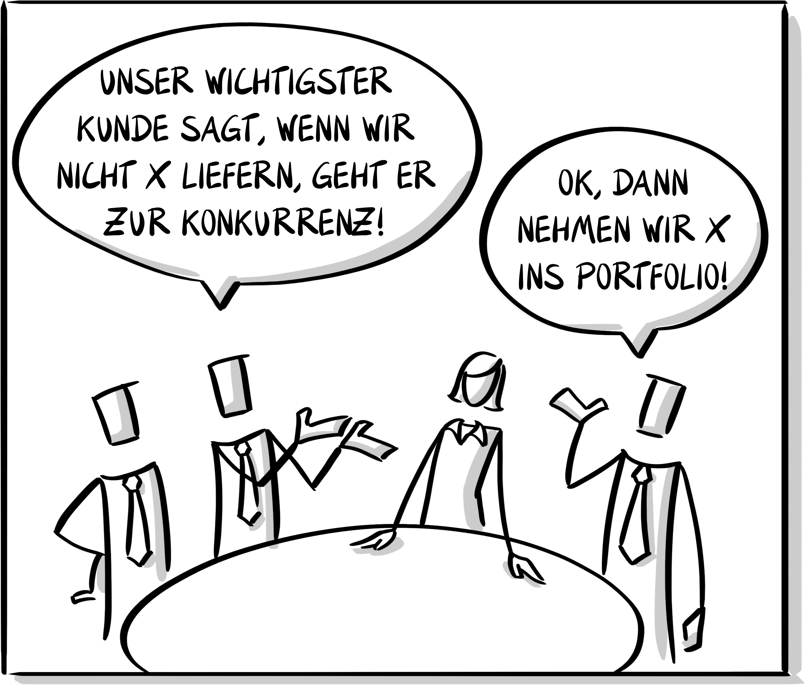 Kundenfeedback muss natürlich ernst genommen werden, und so spielen die Product Owner die Meinung des Kunden zurück ans Management:
