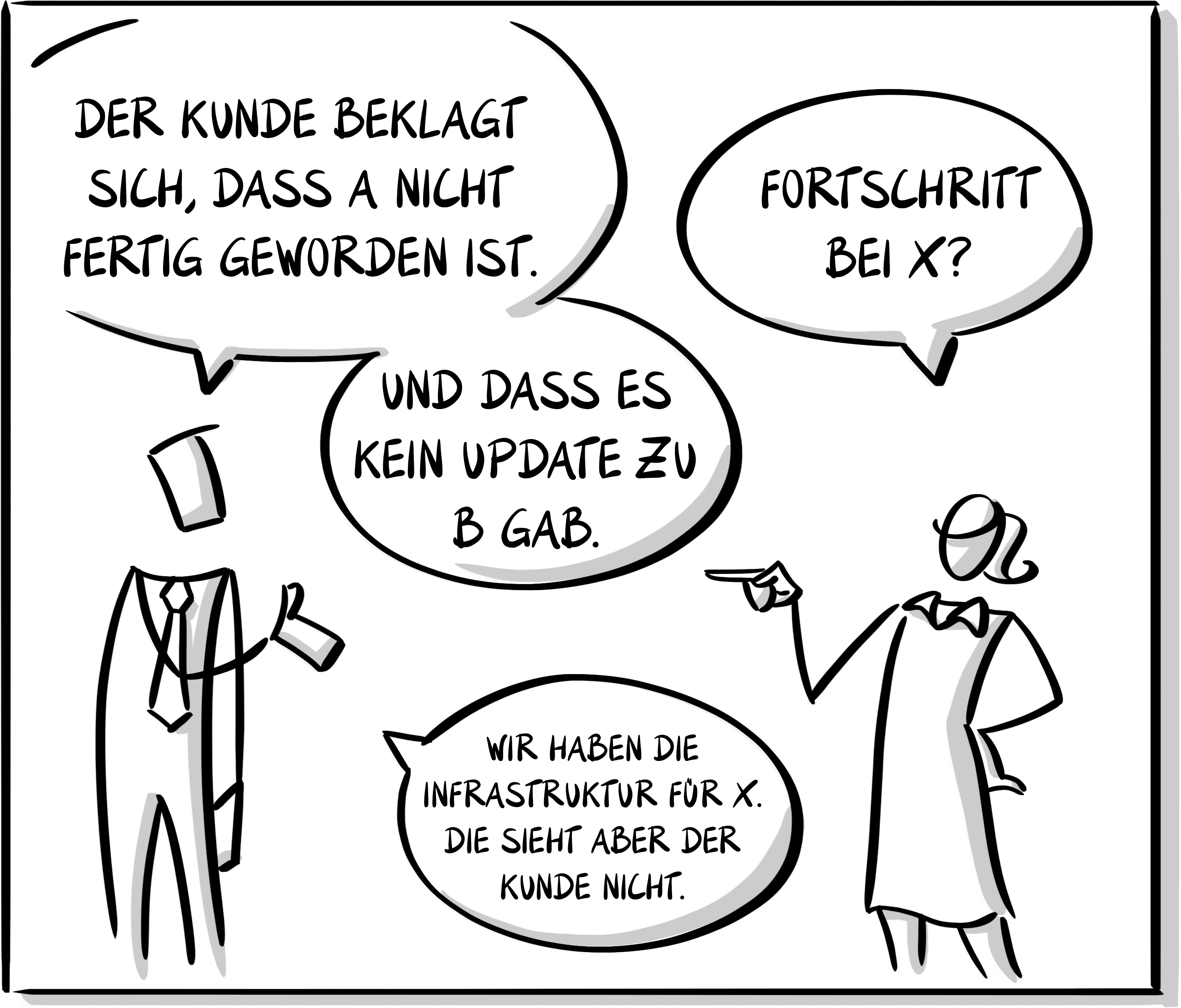 Und die Teams gehen an die Arbeit, und jeder tut das Beste – das böse Erwachen kommt dann in der Demo mit dem Kunden: