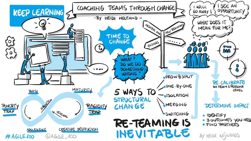 Heidi Helfand gave a presentation about “Coaching Teams Through Change” at the June event of the agile100. She gave an overview about different theses of team dynamics and the derivations on success and failure of these changes. Especially the initial team composition was analyzed by her.