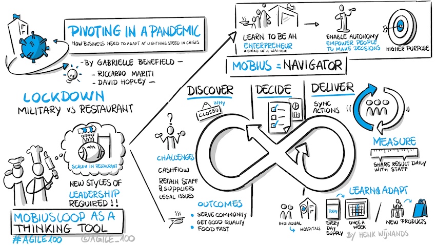Samen beschreven ze hoe het hen met agile methoden was gelukt om het restaurantbedrijf van Riccardo binnen slechts vijf uur (!) te pivoteren en aan het begin van de COVID-19-crisis opnieuw in te richten. Zonder deze aanpassing had Riccardo's restaurant in Chelsea, Londen door de Britse maatregelen tijdelijk moeten sluiten. Gedreven door agile en lean principes hebben ze zijn businessmodel echter van de ene op de andere dag zo geherstructureerd dat het restaurant in een handomdraai werd omgebouwd tot een „Deli". Al de volgende ochtend was Riccardo's niet meer het stijlvolle restaurant in de trendy wijk van Londen, maar een eetgelegenheid die maaltijden aanbod om af te halen en als bezorgservice voor de buurt en lokale ziekenhuizen.
