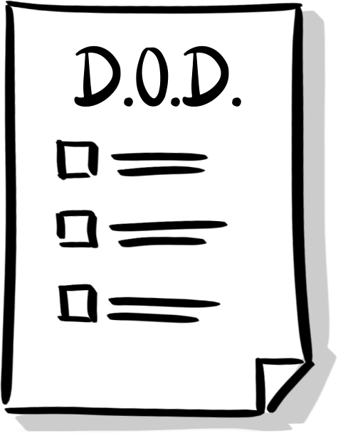 Single done, done, done-done-done, done list, done checklist, product sashimi, task complete definition, punch list