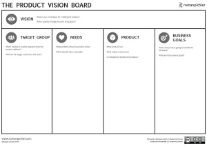 Existem muitas formas de criar uma boa Visão do Produto. Pessoalmente, na Agile Academy preferimos abordagens sistemáticas, por exemplo, usando uma ferramenta. Nossa ferramenta preferida é o Product Vision Canvas, que ajuda a pensar sistematicamente sobre os aspectos mais importantes da Visão do Produto e fornece orientações sobre como formulá-la.
