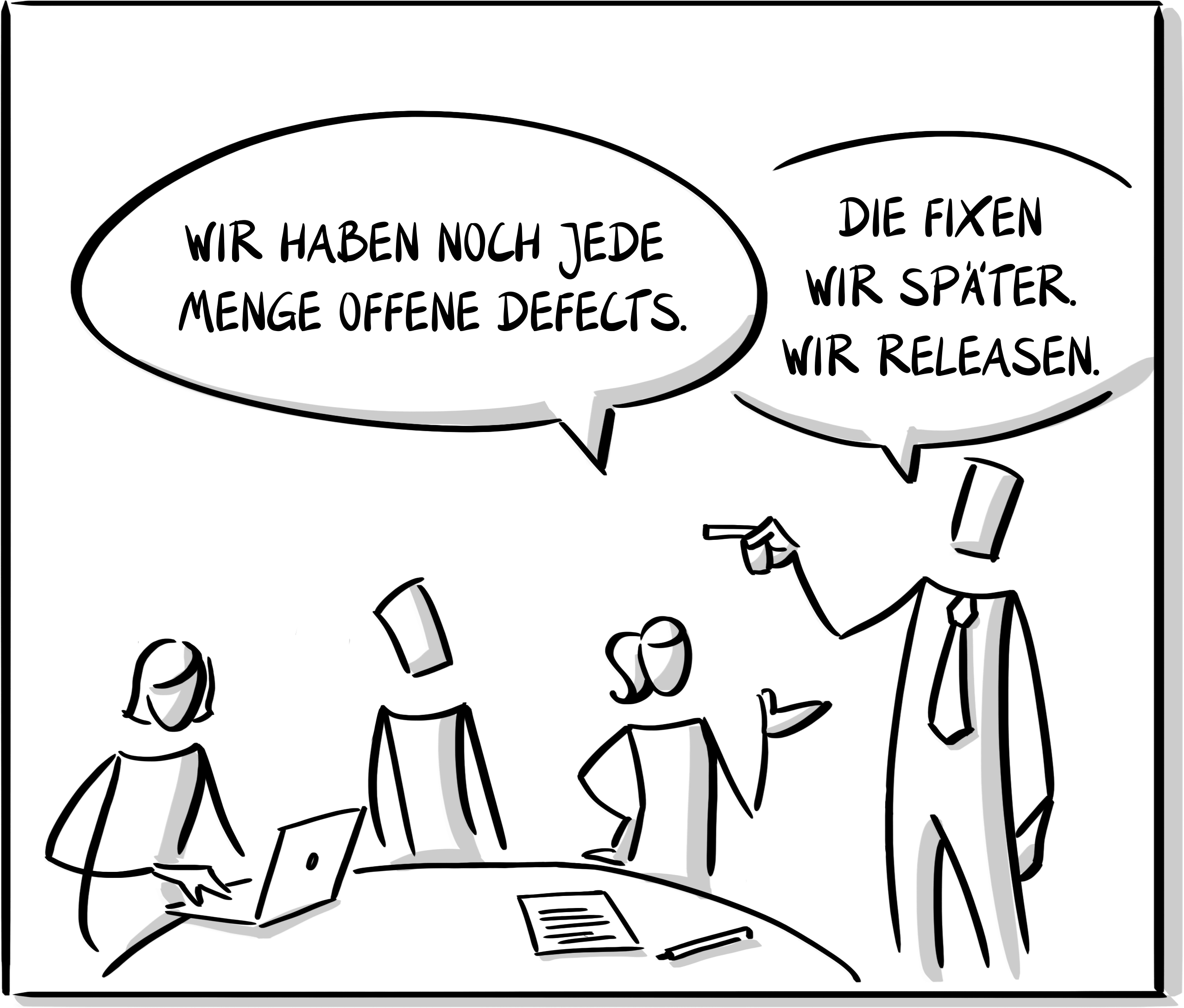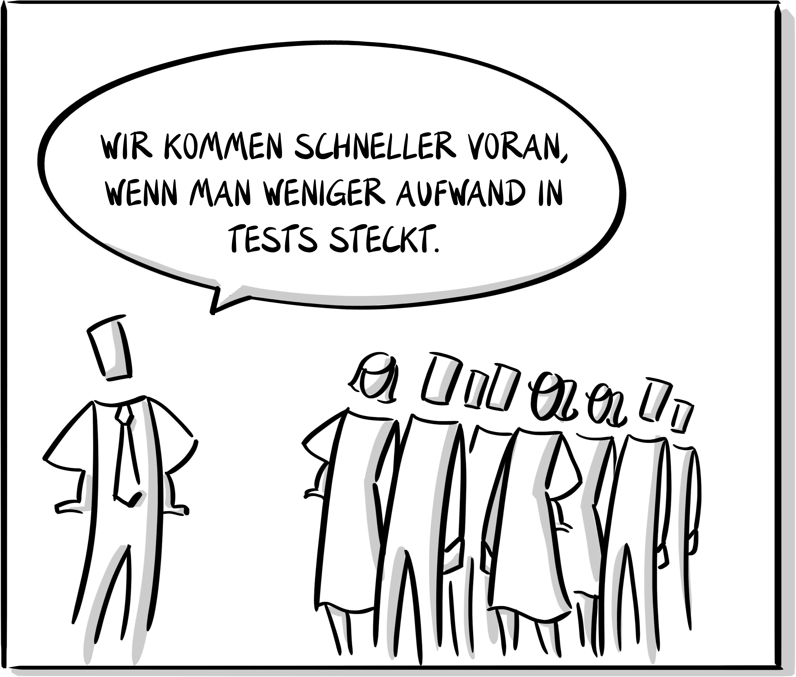 A situação se agrava muito rapidamente quando há muitos testes manuais pendentes. Quanto maior a equipe de desenvolvimento, mais testes surgem. Especialmente quando o tempo é escasso, uma decisão errada fatal se torna cada vez mais provável: