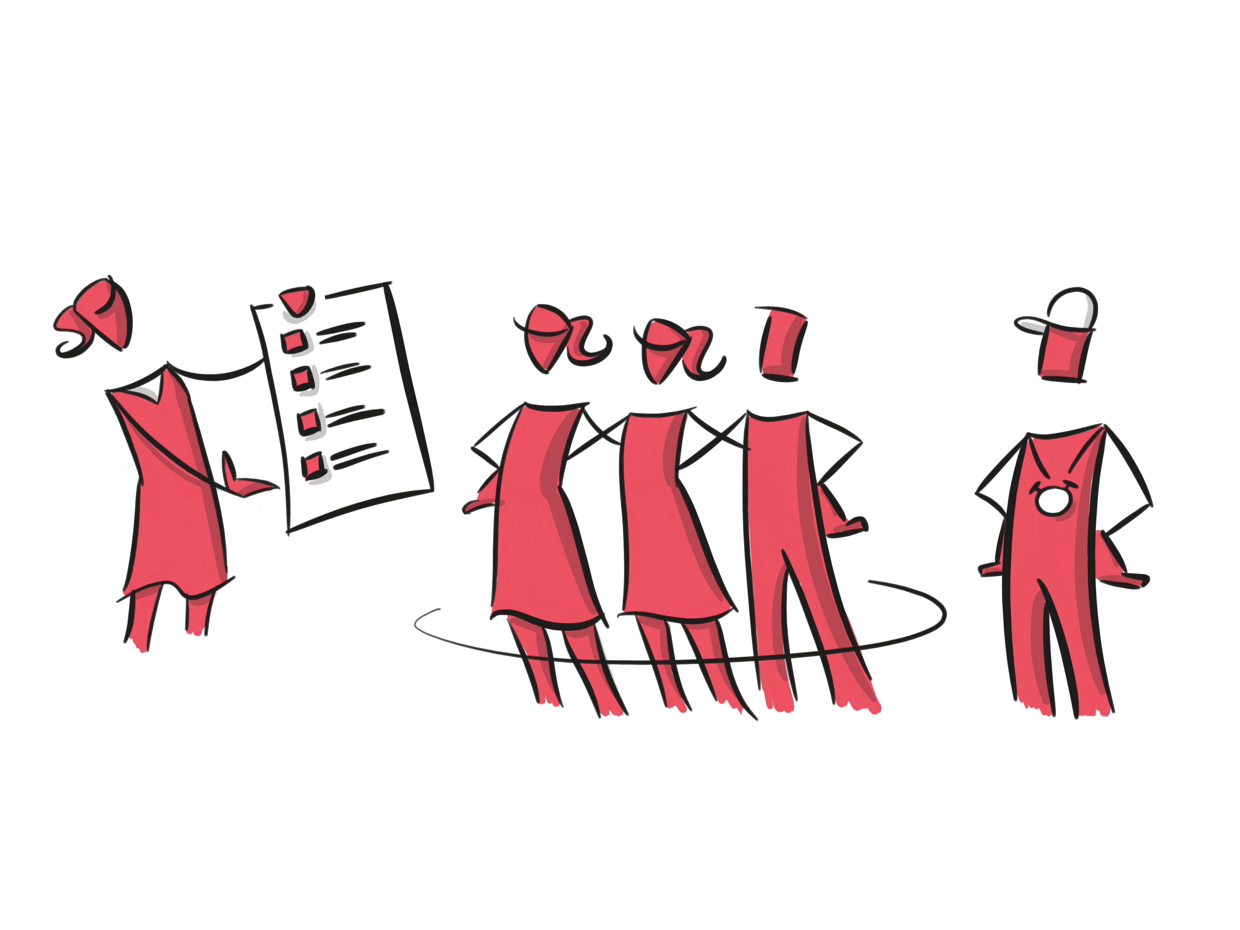 - Equipes de desenvolvimento que estavam acostumadas a hierarquias clássicas de comando e controle por anos tendem a reportar e prestar contas ao Scrum Master ou Product Owner no Daily Standup Meeting. No entanto, trata-se exclusivamente de reportar aos colegas do próprio Development Team.